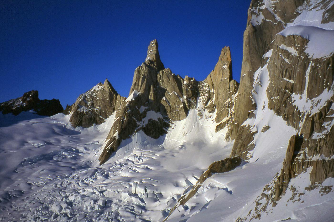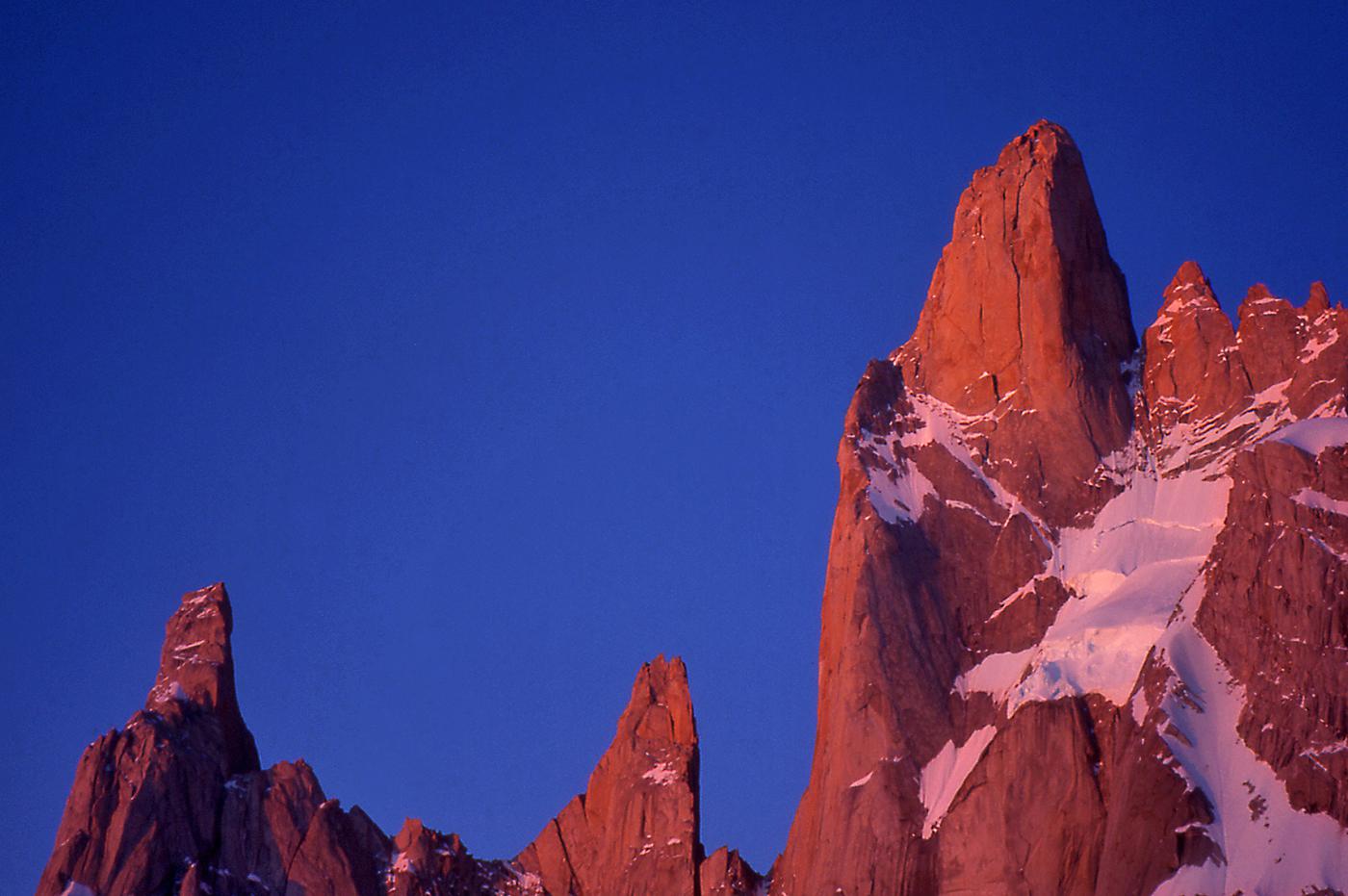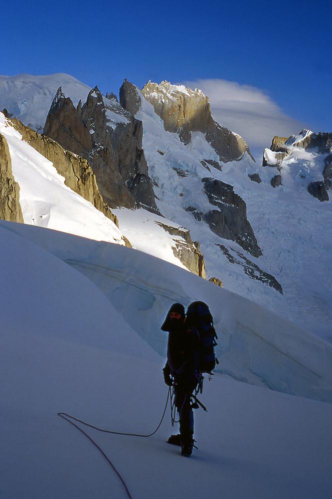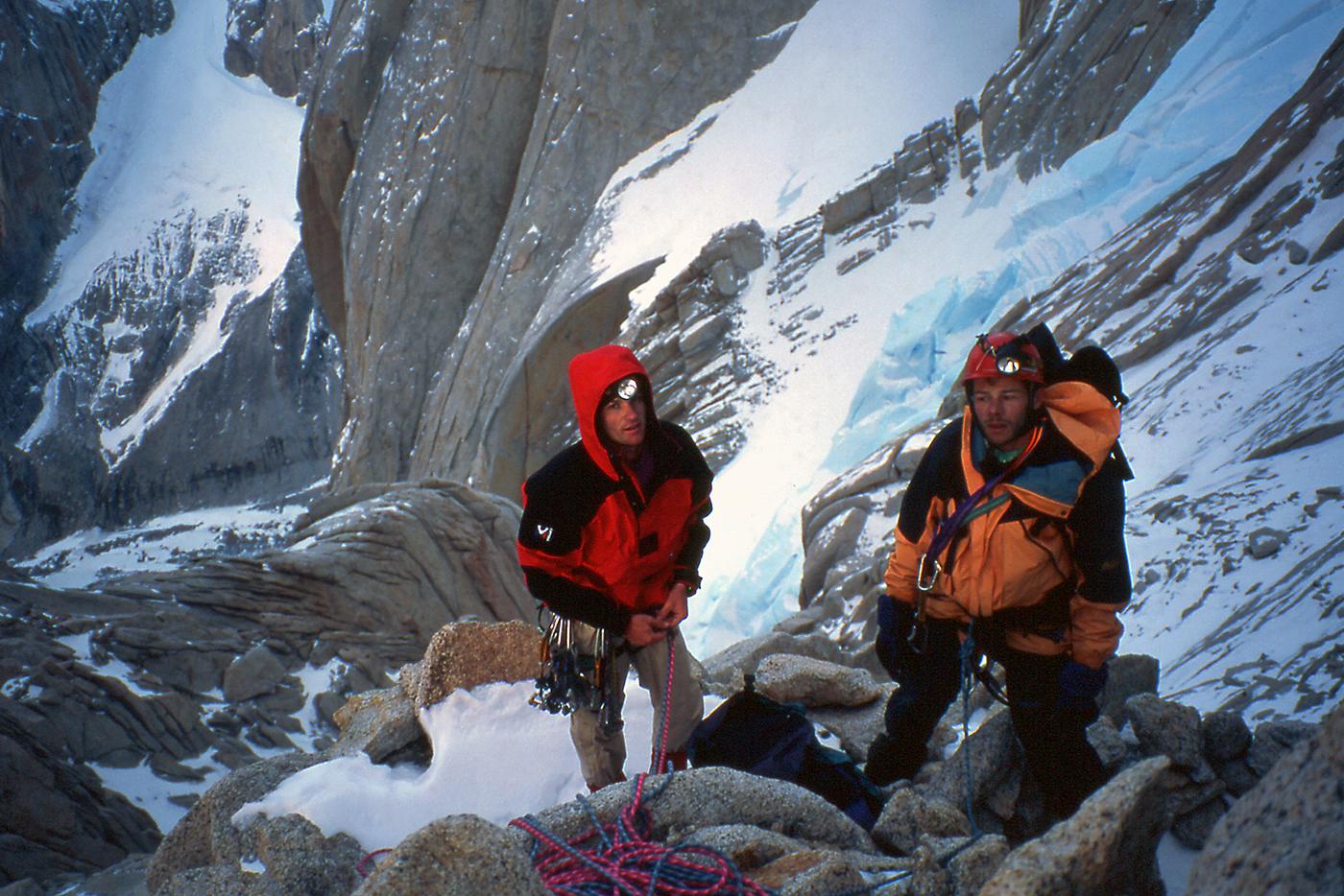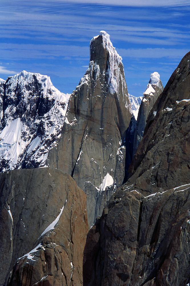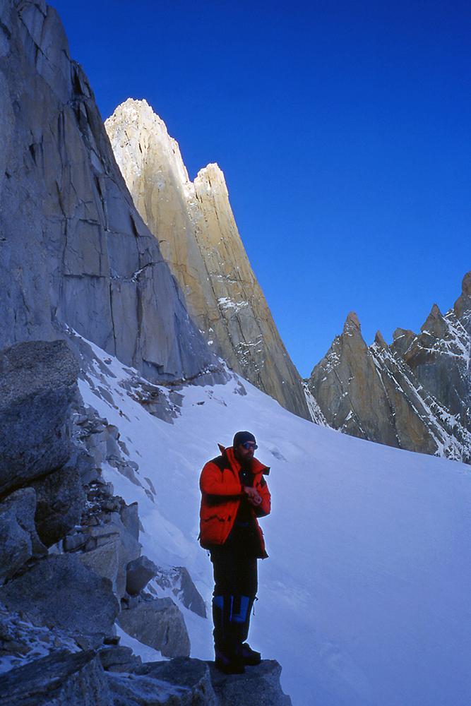 Difficile de trouver montagnes plus esthétiques que celles de Patagonie. Je suis sûr que dans l'imaginaire des enfants, les montagnes ont la silhouette du Cerro Torre ou du Fitz Roy. J'ai connu ces montagnes en 1995 puis en 1999. La première fois, je voulais gravir seul la face ouest du Cerro Torre, mais je me suis vite rendu compte que j'étais bien mieux dans les bras de Féra mon argentine que suspendu à des piolets dans une face battue par les vents du Hielo Continental. Ensuite, j'ai rencontré Alain et David avec qui nous avons tenté le Fitz Roy, d'abord par "El Corazon" puis par la voie Franco-Argentine. En 1999, un nouveau voyage se fait avec Francine, Benoît et Christian. Partis pour gravir le Pilier Casarotto au Fitz Roy, nous ne sommes pas montés bien haut, encore moins quelques jours plus tard sur le Cerro Torre. À cette époque, nous attendions un créneau météo installés dans les cabanes au pied des montagnes, au milieu de magnifiques forêts. Pour décider de s'engager ou pas, il fallait seulement se fier aux variations de pressions atmosphériques que nous indiquait l'altimètre. Il n'y avait pas de smartphones, de prévisions sur internet. Nous nous sommes à chaque fois épuisés à lancer un essai dans des fenêtres météo trop courtes. Surtout, nous n'étions vraiment pas les rois de la stratégie ! Aujourd'hui, les parois de Patagonie sont devenues "the place to be". Les grimpeurs attendent le beau temps installés dans les hôtels et bars de Chalten, scrutant la météo toutes les demi-heures sur internet, puis tout le monde part en même temps, généralement vers les deux ou trois mêmes itinéraires. C'est un chagement radical dans la manière d'approcher ces montagnes, qui a aussi permis des réalisations impressionnantes : nouvelles voies très dures, enchaînements, traversée de plusieurs sommets, solos express...