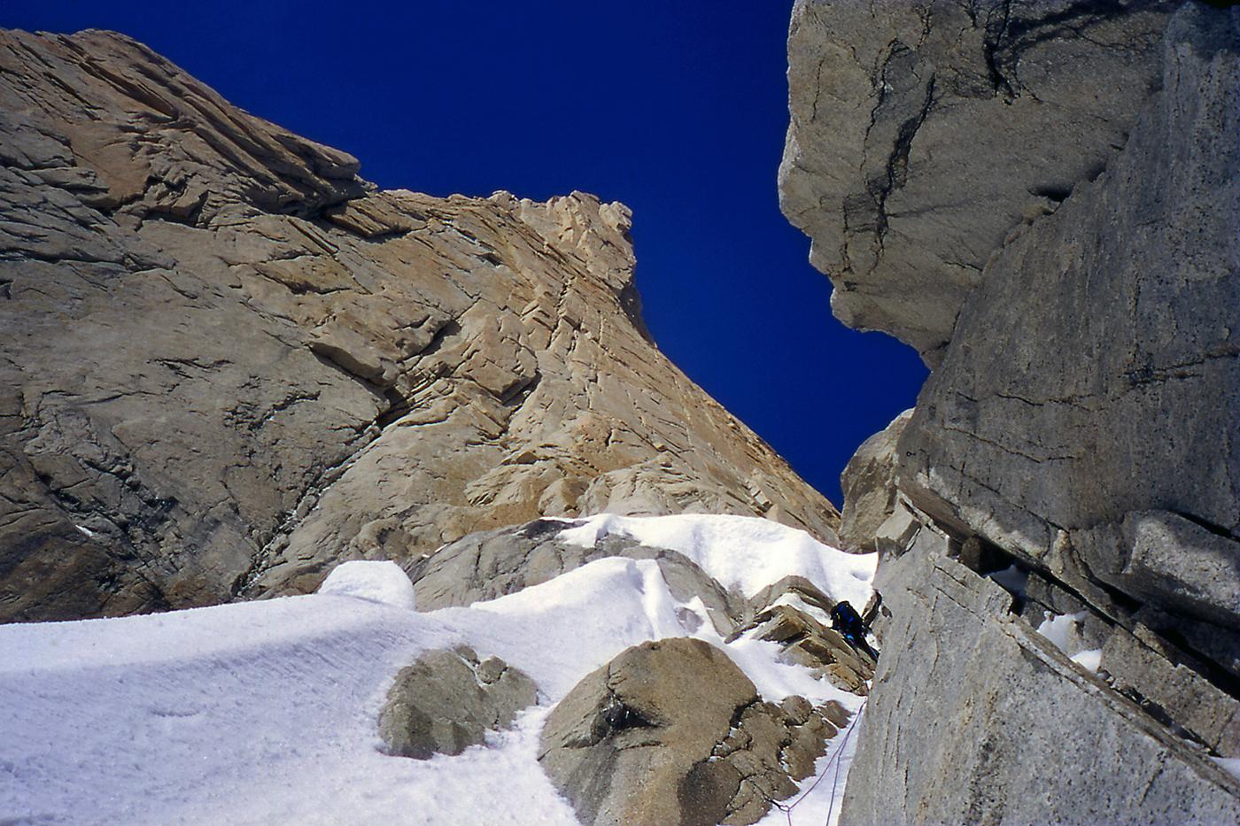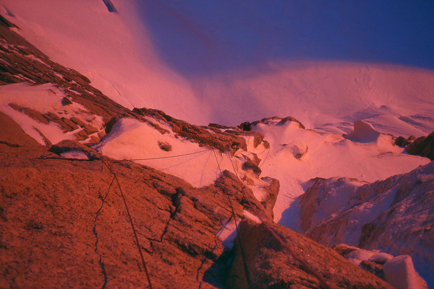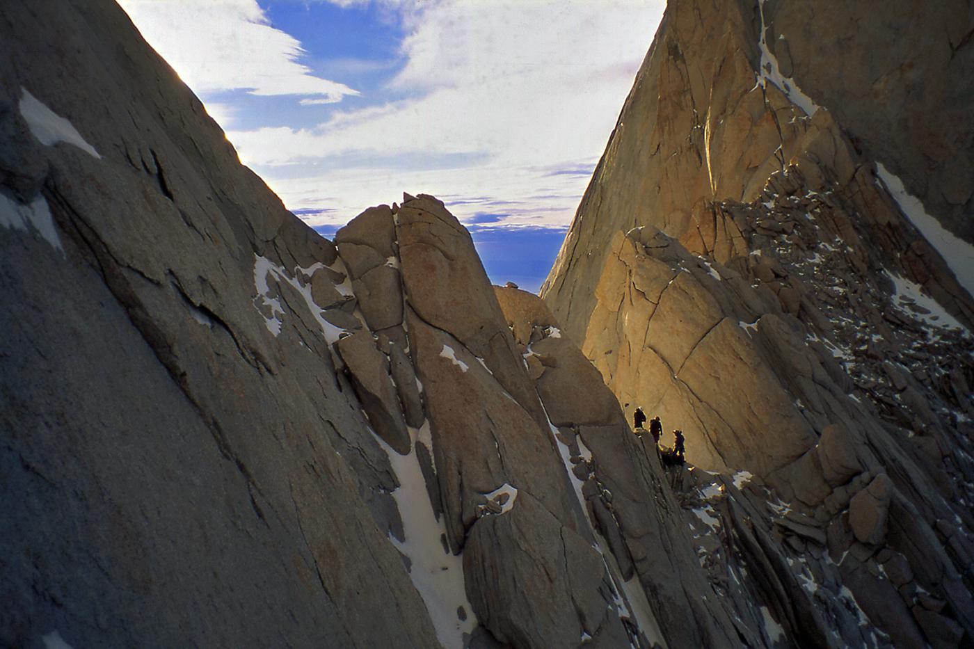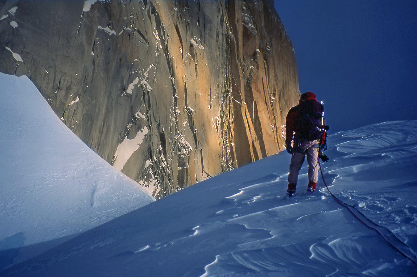 Difficile de trouver montagnes plus esthétiques que celles de Patagonie. Je suis sûr que dans l'imaginaire des enfants, les montagnes ont la silhouette du Cerro Torre ou du Fitz Roy. J'ai connu ces montagnes en 1995 puis en 1999. La première fois, je voulais gravir seul la face ouest du Cerro Torre, mais je me suis vite rendu compte que j'étais bien mieux dans les bras de Féra mon argentine que suspendu à des piolets dans une face battue par les vents du Hielo Continental. Ensuite, j'ai rencontré Alain et David avec qui nous avons tenté le Fitz Roy, d'abord par "El Corazon" puis par la voie Franco-Argentine. En 1999, un nouveau voyage se fait avec Francine, Benoît et Christian. Partis pour gravir le Pilier Casarotto au Fitz Roy, nous ne sommes pas montés bien haut, encore moins quelques jours plus tard sur le Cerro Torre. À cette époque, nous attendions un créneau météo installés dans les cabanes au pied des montagnes, au milieu de magnifiques forêts. Pour décider de s'engager ou pas, il fallait seulement se fier aux variations de pressions atmosphériques que nous indiquait l'altimètre. Il n'y avait pas de smartphones, de prévisions sur internet. Nous nous sommes à chaque fois épuisés à lancer un essai dans des fenêtres météo trop courtes. Surtout, nous n'étions vraiment pas les rois de la stratégie ! Aujourd'hui, les parois de Patagonie sont devenues "the place to be". Les grimpeurs attendent le beau temps installés dans les hôtels et bars de Chalten, scrutant la météo toutes les demi-heures sur internet, puis tout le monde part en même temps, généralement vers les deux ou trois mêmes itinéraires. C'est un chagement radical dans la manière d'approcher ces montagnes, qui a aussi permis des réalisations impressionnantes : nouvelles voies très dures, enchaînements, traversée de plusieurs sommets, solos express...