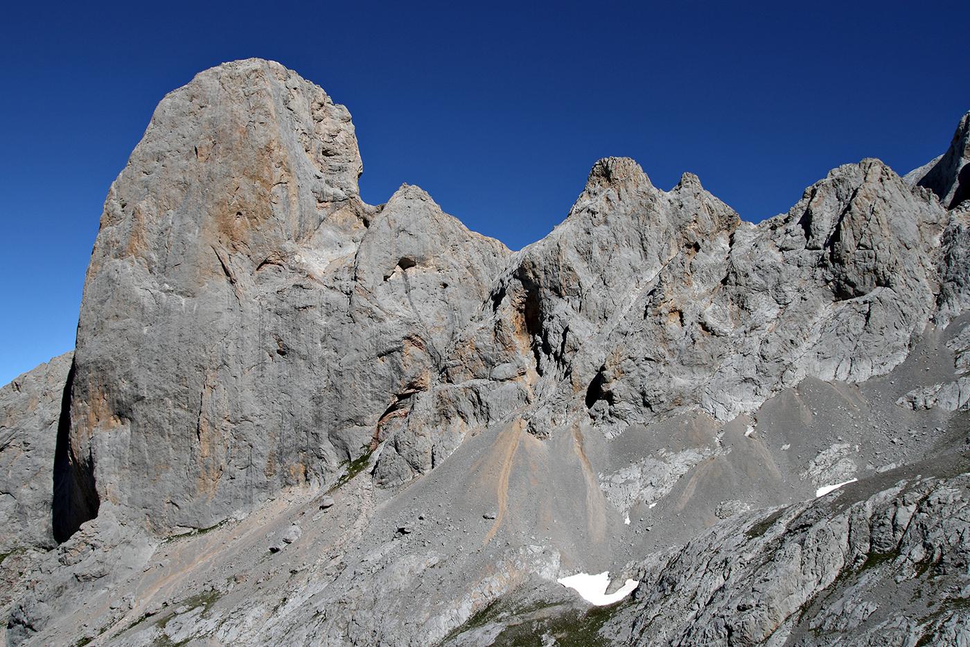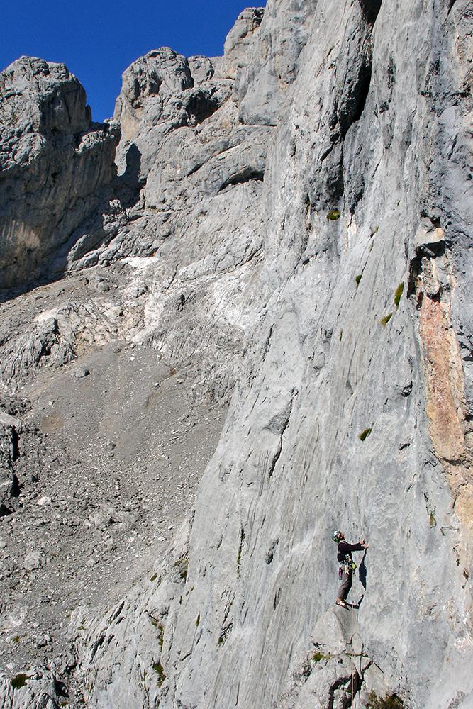 Il est difficile de trouver meilleur calcaire que dans les Picos de Europa. Ce massif des Cantabriques ne se laisse pas facilement faire car il est fréquemment arrosé par les influences de l'Atlantique dont il est proche, soumis à des gros orages ou plongé dans un brouillard humide. Avant de s'y rendre, on regarde donc plutôt deux fois qu'une les prévisions météorologiques. Les faces du Naranjo de Bulnes et de la Peña Santa de Castilla notamment offent des voies de grande classe, sur un rocher très sculpté et généreux. Voici quelques photos prises au travers de trop rares escapades dans cette région.
