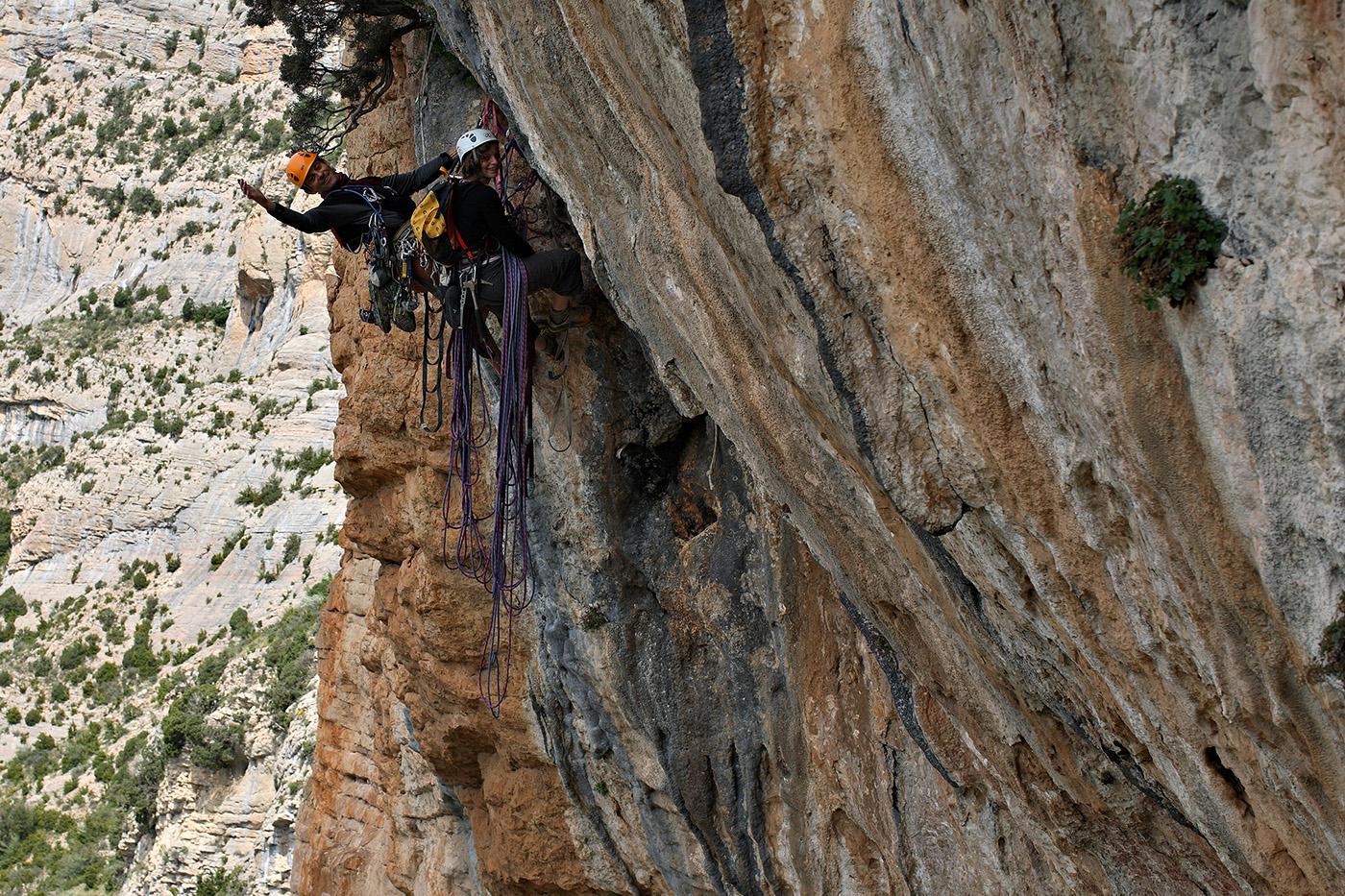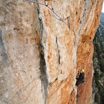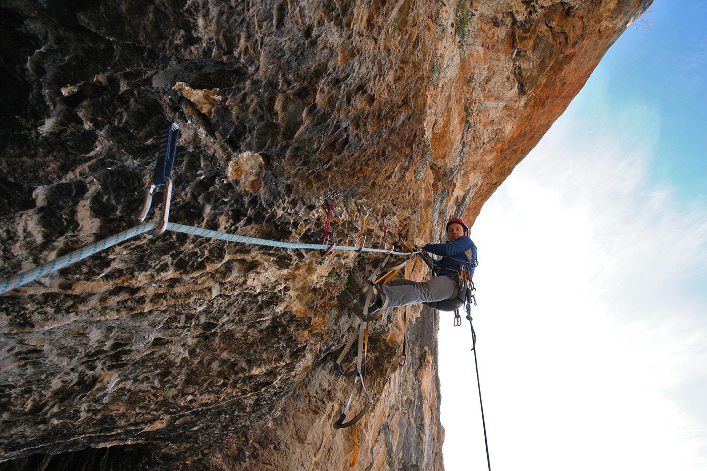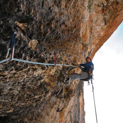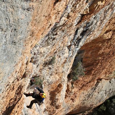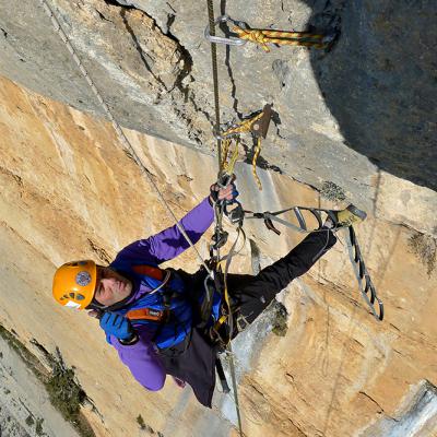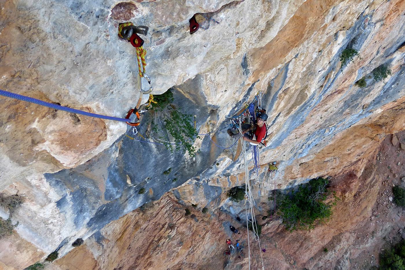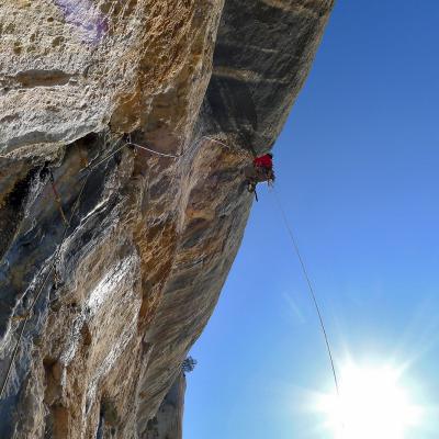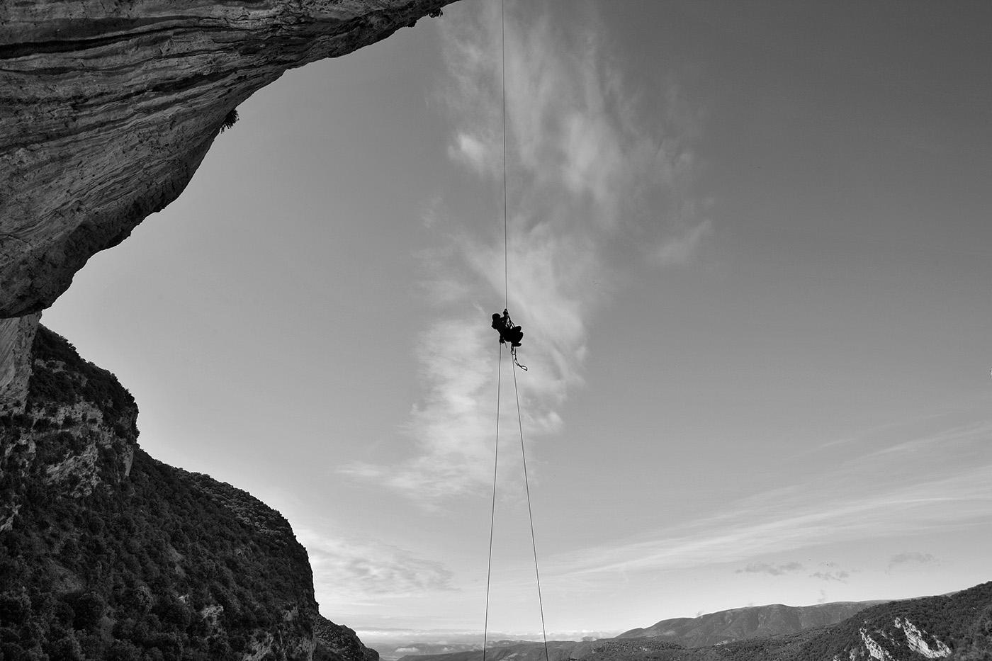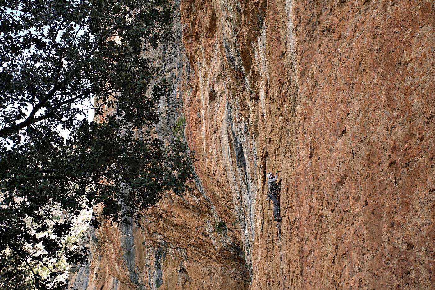 L'escalade artificielle consiste à grimper sur des parois surplombantes où l'escalade en libre serait trop difficile. On progresse de point à point, d'étrier en étrier, en mettant son propre équipement : pitons, crochets, plombs, cales de bois, friends, coinceurs, etc. Il est parfois compliqué de trouver une solution pour mettre un point et continuer à s'élever. Ainsi, plus les protections que l'on met sont précaires, plus la cotation de la longueur augmente. Cette escalade change notre rapport habituel au temps tant la progression est souvent lente et technologique. C'est une bonne opportunité pour s'immerger complètement dans les ambiances de parois et aussi de vivre de longs voyages quand on part dans une voie nécessitant des bivouacs. La plupart de ces photos sont issues de différents stages "d'artif" à Vilanova de Meià.