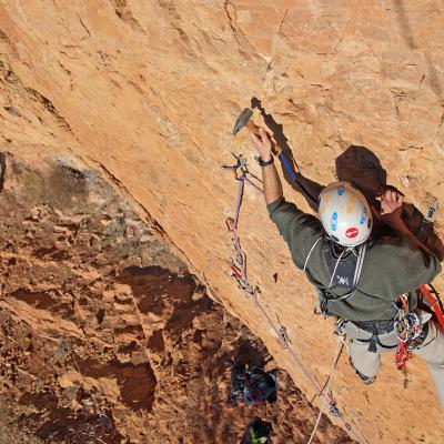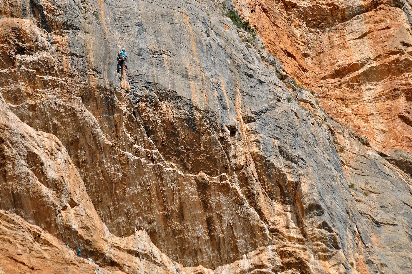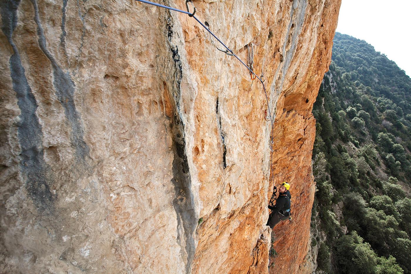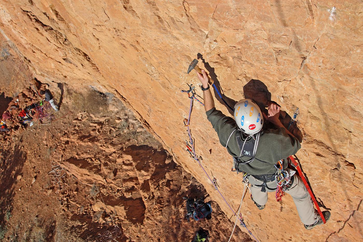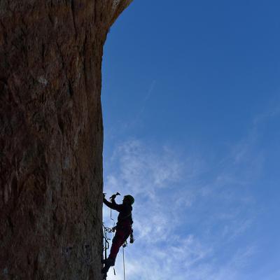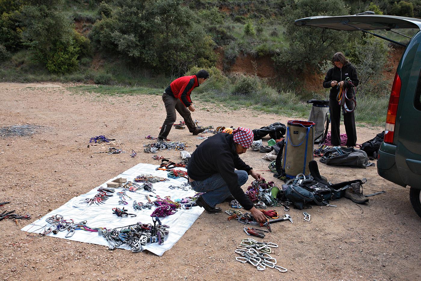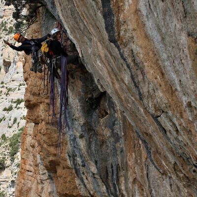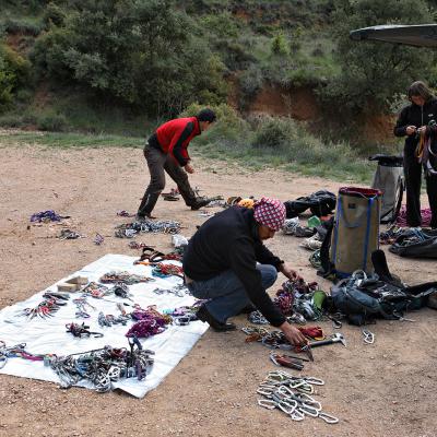 L'escalade artificielle consiste à grimper sur des parois surplombantes où l'escalade en libre serait trop difficile. On progresse de point à point, d'étrier en étrier, en mettant son propre équipement : pitons, crochets, plombs, cales de bois, friends, coinceurs, etc. Il est parfois compliqué de trouver une solution pour mettre un point et continuer à s'élever. Ainsi, plus les protections que l'on met sont précaires, plus la cotation de la longueur augmente. Cette escalade change notre rapport habituel au temps tant la progression est souvent lente et technologique. C'est une bonne opportunité pour s'immerger complètement dans les ambiances de parois et aussi de vivre de longs voyages quand on part dans une voie nécessitant des bivouacs. La plupart de ces photos sont issues de différents stages "d'artif" à Vilanova de Meià.