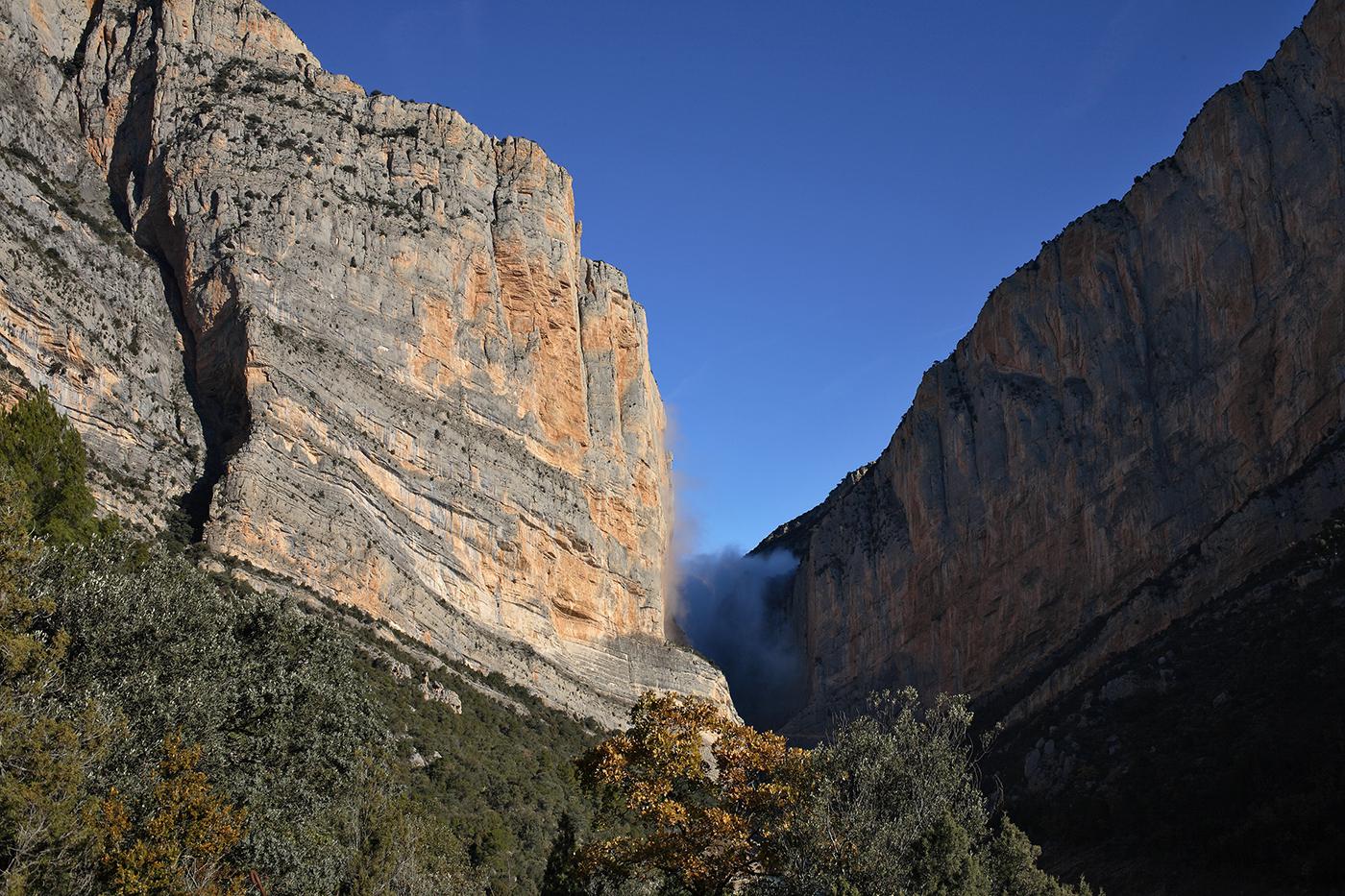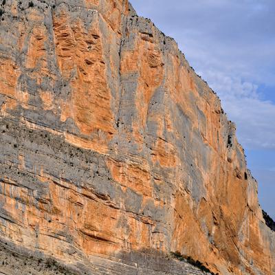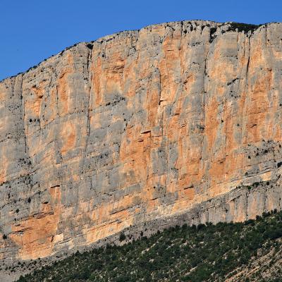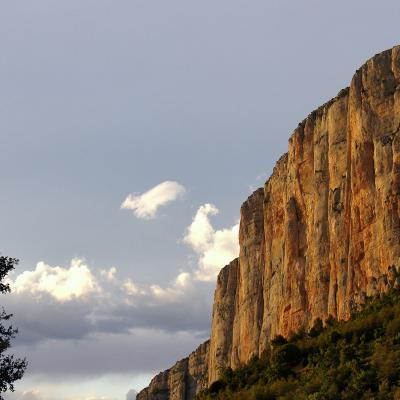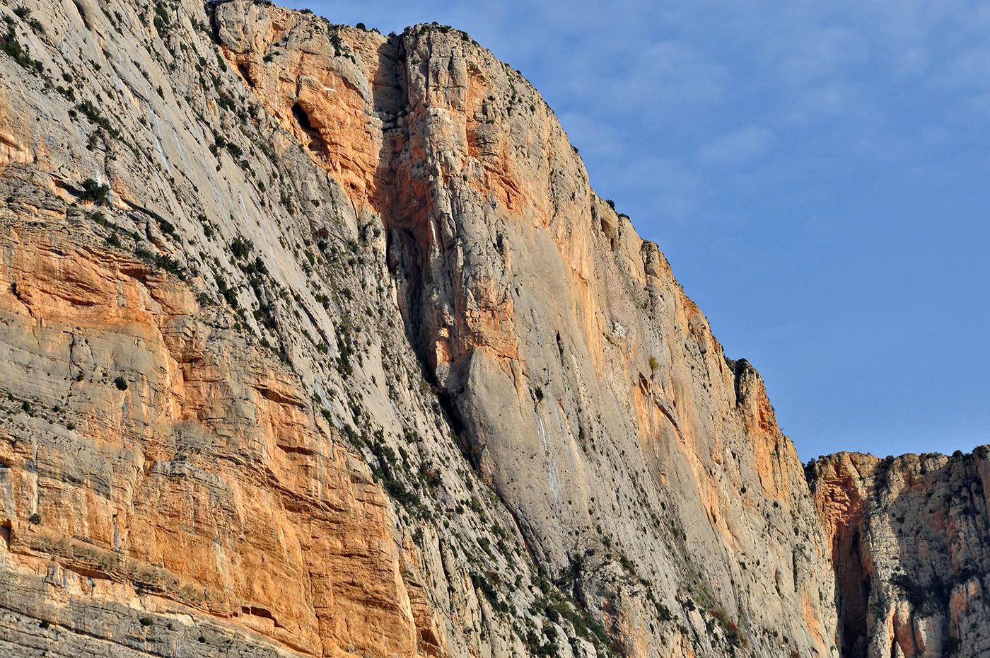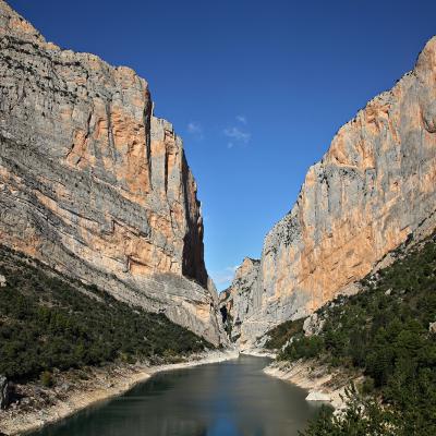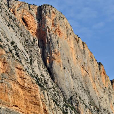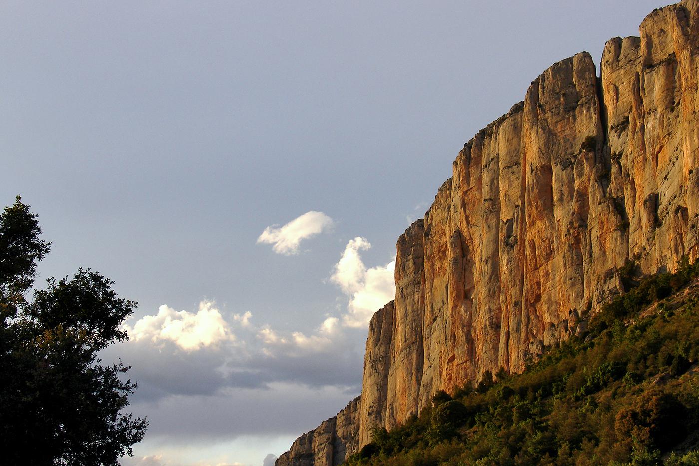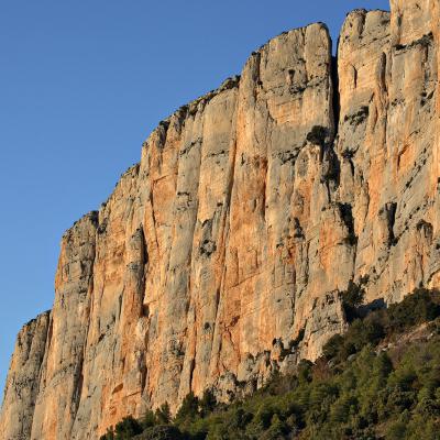 Les parois de Montrebey se trouvent à la frontière de l'Aragon et de la Catalogne, divisées par la Noguera Ribagorzana et le lac de Canelles dans lequel elles plongent. Ce sont les murailles les plus hautes de ces deux régions, jusqu'à plus de 500 mètres. Terre confidentielle et de liberté pendant longtemps pour les grimpeurs, les têtes pensantes de la Fundació Catalunya-La Pedrera, sous prétexte d'en préserver l'espace, en ont fait peu à peu depuis une quinzaine d'années une sorte de Luna Park du plein air, engendrant une sur-fréquentation notoire (200 000 personnes en 2019), engendrant elle-même des problèmes de pollution... justifiant ainsi la mise en place de parkings payants afin de subvenir aux frais de nettoyage du site. Le tour de passe-passe du tourisme moderne était joué, au grand dépit des grimpeurs devenus persona non grata même si l'escalade n'y est pas encore totalement interdite. Les parois demeurent et je vous en propose quelques clichés.