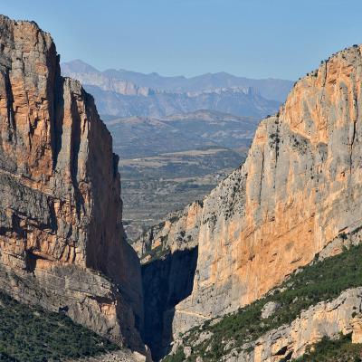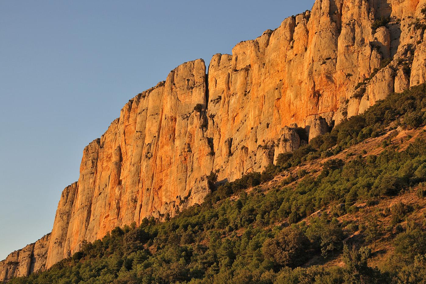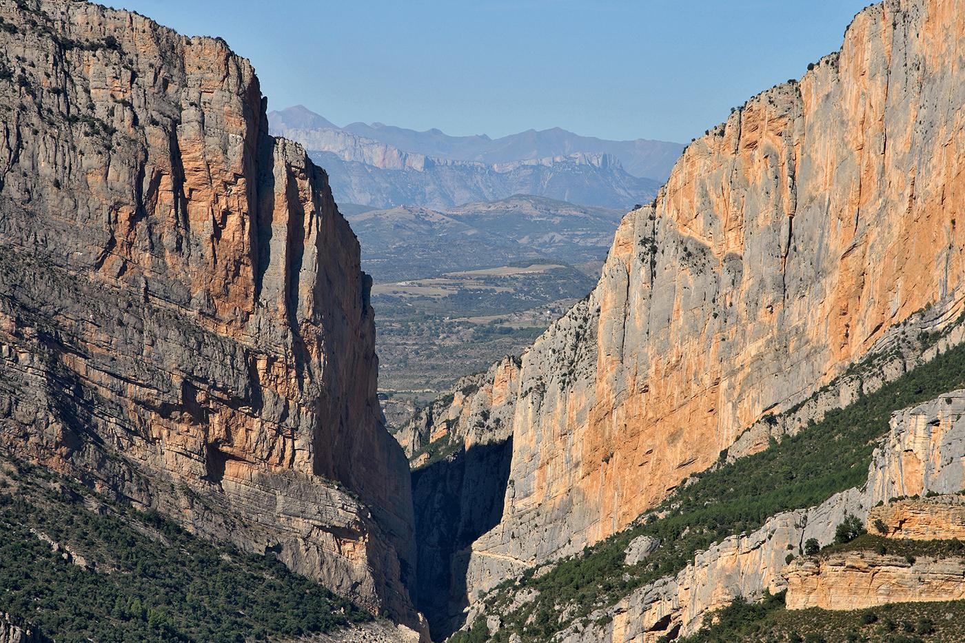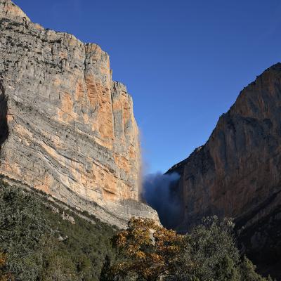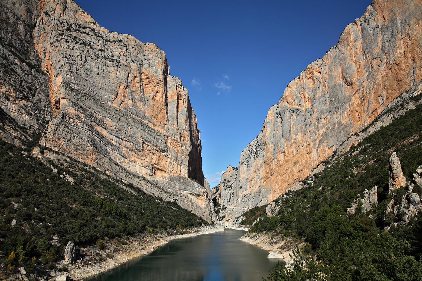 Les parois de Montrebey se trouvent à la frontière de l'Aragon et de la Catalogne, divisées par la Noguera Ribagorzana et le lac de Canelles dans lequel elles plongent. Ce sont les murailles les plus hautes de ces deux régions, jusqu'à plus de 500 mètres. Terre confidentielle et de liberté pendant longtemps pour les grimpeurs, les têtes pensantes de la Fundació Catalunya-La Pedrera, sous prétexte d'en préserver l'espace, en ont fait peu à peu depuis une quinzaine d'années une sorte de Luna Park du plein air, engendrant une sur-fréquentation notoire (200 000 personnes en 2019), engendrant elle-même des problèmes de pollution... justifiant ainsi la mise en place de parkings payants afin de subvenir aux frais de nettoyage du site. Le tour de passe-passe du tourisme moderne était joué, au grand dépit des grimpeurs devenus persona non grata même si l'escalade n'y est pas encore totalement interdite. Les parois demeurent et je vous en propose quelques clichés.