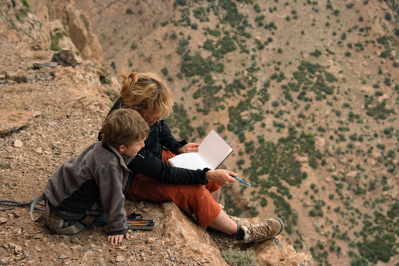 J'ai eu la chance de grimper sur les parois de Taghia avant que ça ne devienne 'the place to be" et de ne plus avoir trop envie d'y revenir. J'ai beaucoup de photos d'escalade ce cette époque mais leur qualité, mauvais scans de diapos ou photos du temps des premiers appareils numériques, laisse un peu à désirer. J'ai plutôt choisi des images de deux voyages en famille en 2008 et 2010 avec Martin mon fils et Francine sa maman, lors desquels nous avions visité différents coins.